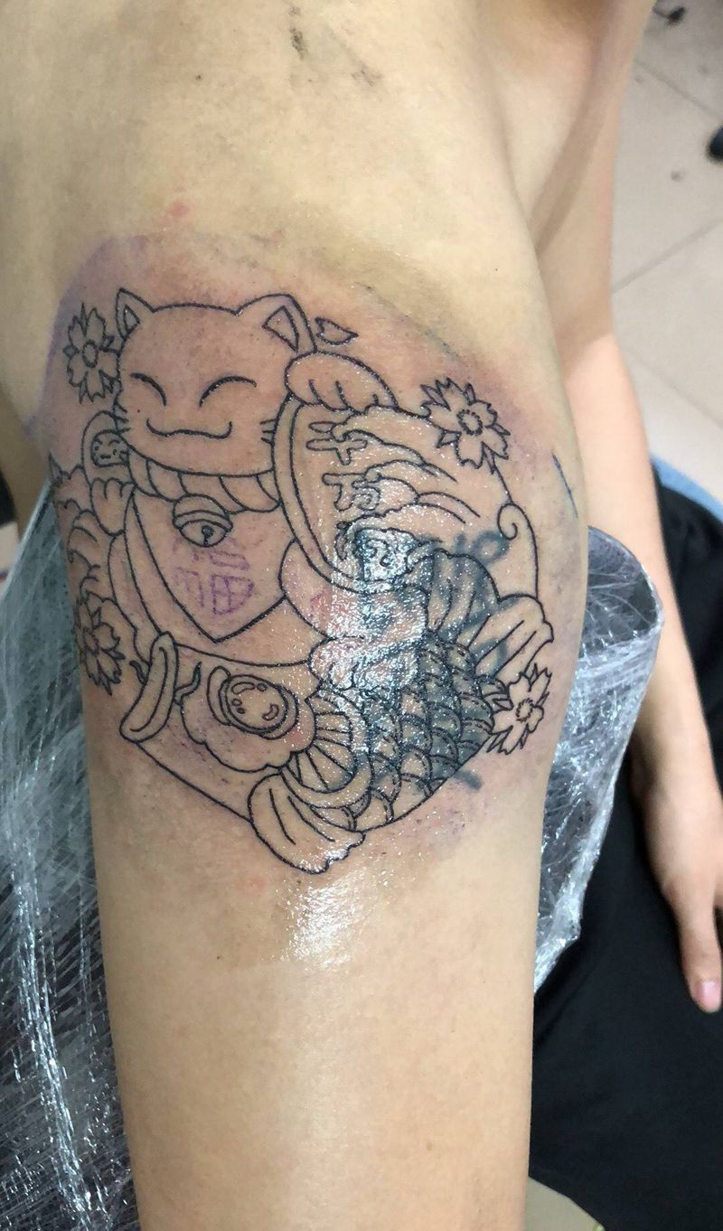 当前位置: 首页 >广西南宁市纹身店-轩铭刺青纹身工作室纹身图案>半遮盖招财猫纹身图片