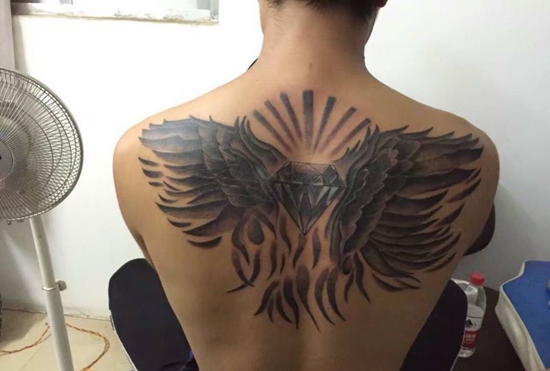 黑灰满背纹身图案