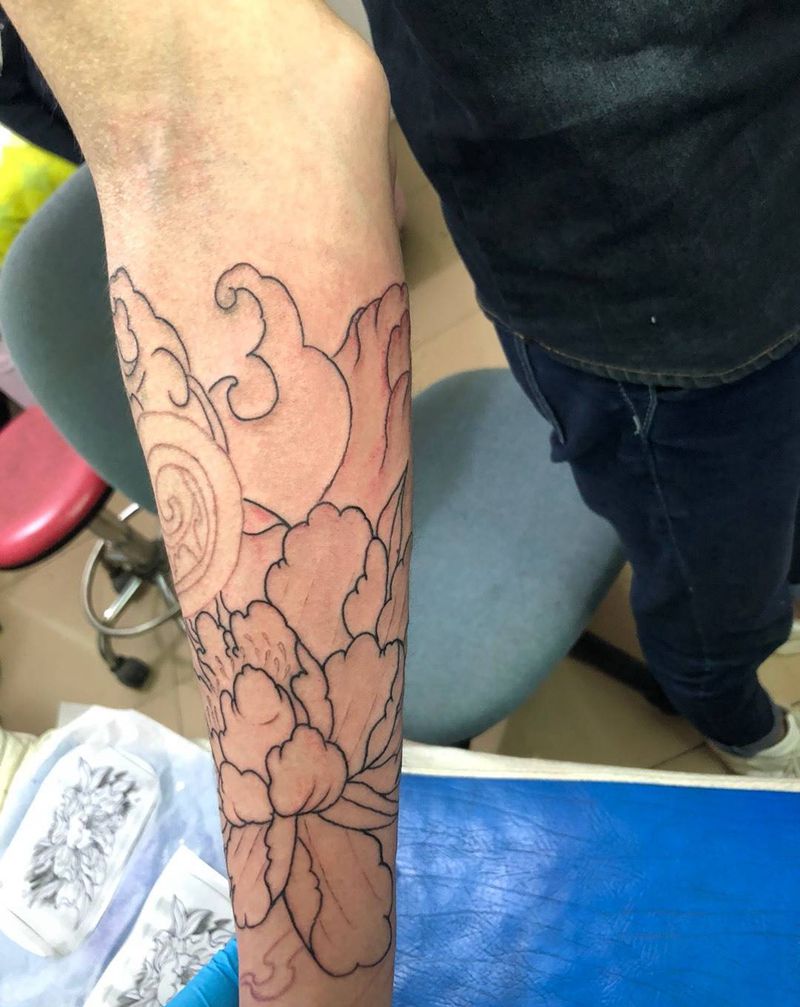 当前位置: 首页 >广西南宁市纹身店-轩铭刺青纹身工作室纹身图案>包小臂今日线条纹身图片