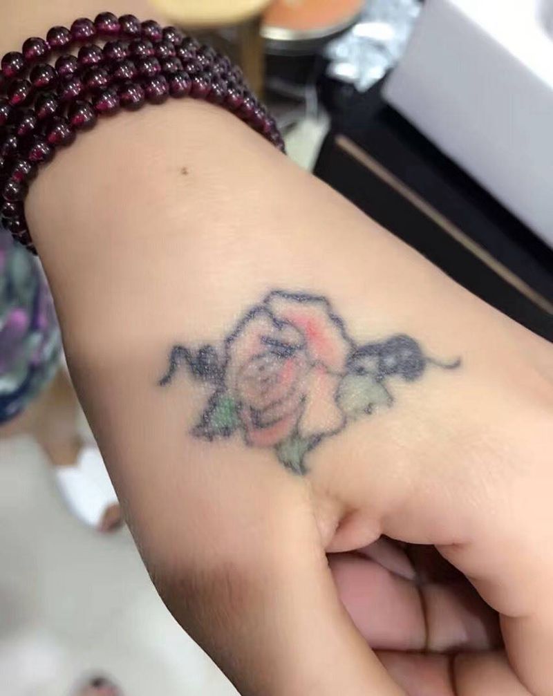 • 手背潮流时尚的玫瑰花眼睛纹身图案
