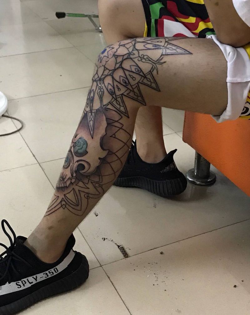 • T网红王老大花腿龙纹身图片_腿部新传统纹身图案