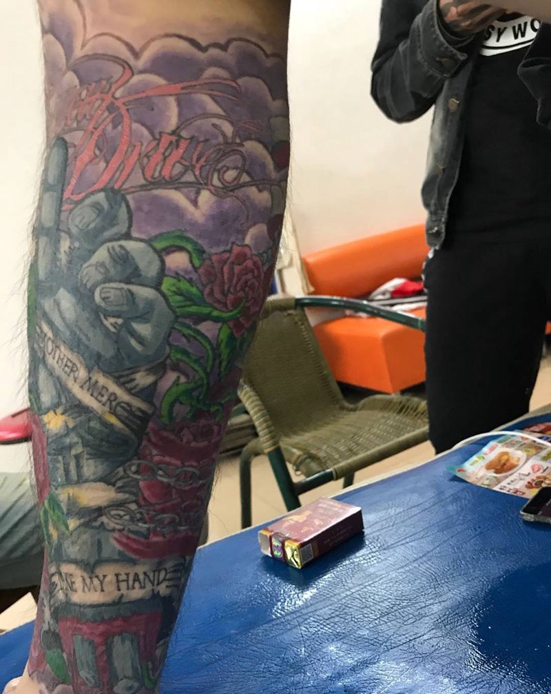 当前位置: 首页 >广西南宁市纹身店-轩铭刺青纹身工作室纹身图案>包小腿纹身图片