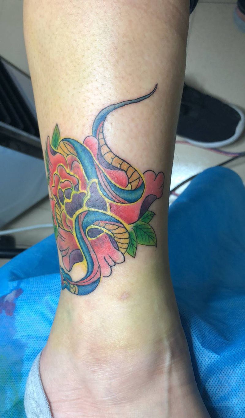 • T网红王老大花腿龙纹身图片_腿部新传统纹身图案