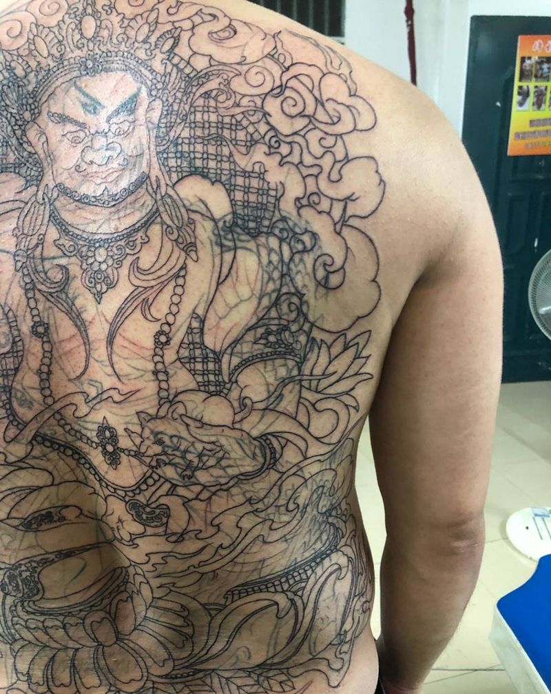 当前位置: 首页 >广西南宁市纹身店-轩铭刺青纹身工作室纹身图案>线条完工,遮盖,下次接彩纹身图片