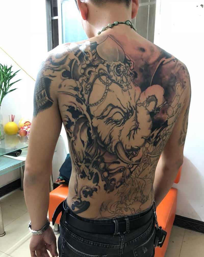 黑灰满背纹身图案