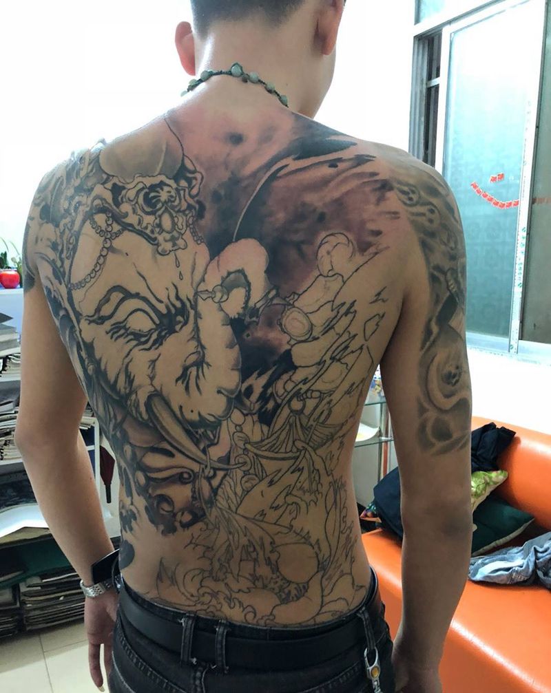 当前位置: 首页 >广西南宁市纹身店-轩铭刺青纹身工作室纹身图案>黑灰先到这,下次继续,结束是彩色纹身图片