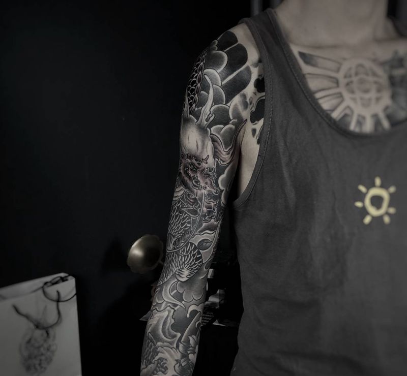 当前位置: 首页 >广西柳州市纹身店-三角刺青纹身图案>传统花臂纹身图片_手臂传统纹身图案