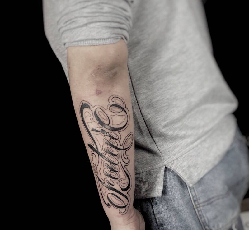 当前位置: 首页 >广西柳州市纹身店-三角刺青纹身图案>花体设计futur纹身图片_手臂花体字纹身图案