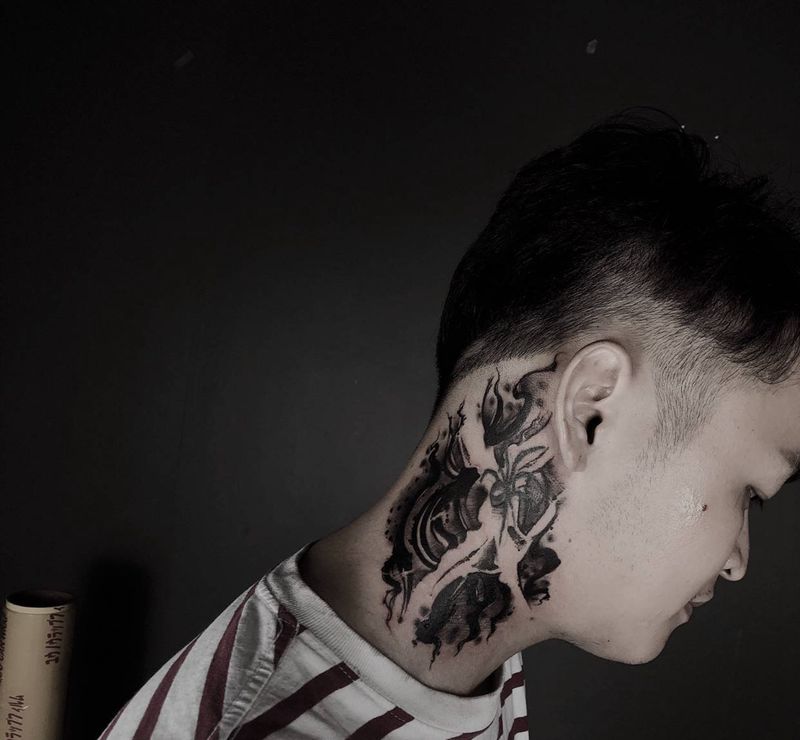 脖子纹身纹身图片_颈部暗黑纹身图案