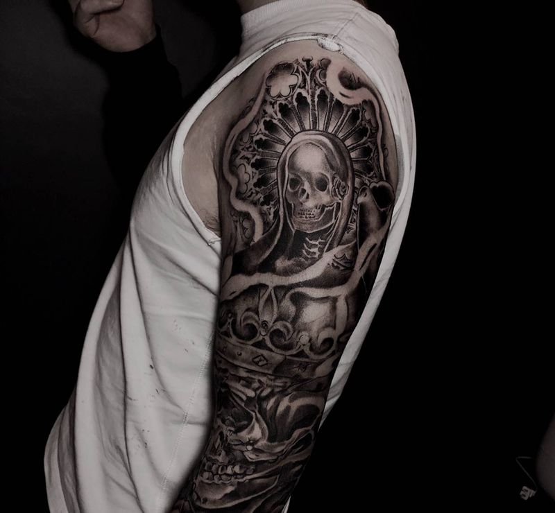 当前位置: 首页 >广西柳州市纹身店-三角刺青纹身图案>花臂纹身图片_手臂欧美写实纹身图案