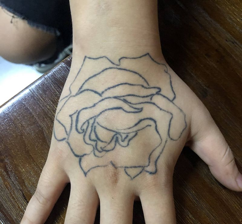 • 手背潮流时尚的玫瑰花眼睛纹身图案
