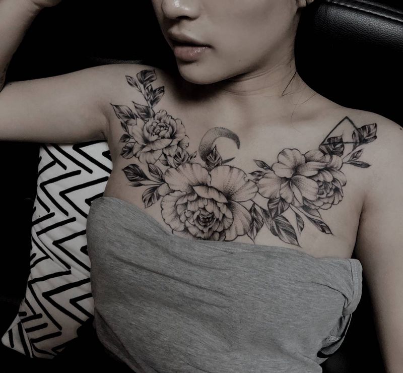• 女性大花胸纹身_43张霸气漂亮的女性大花胸纹身图案作品