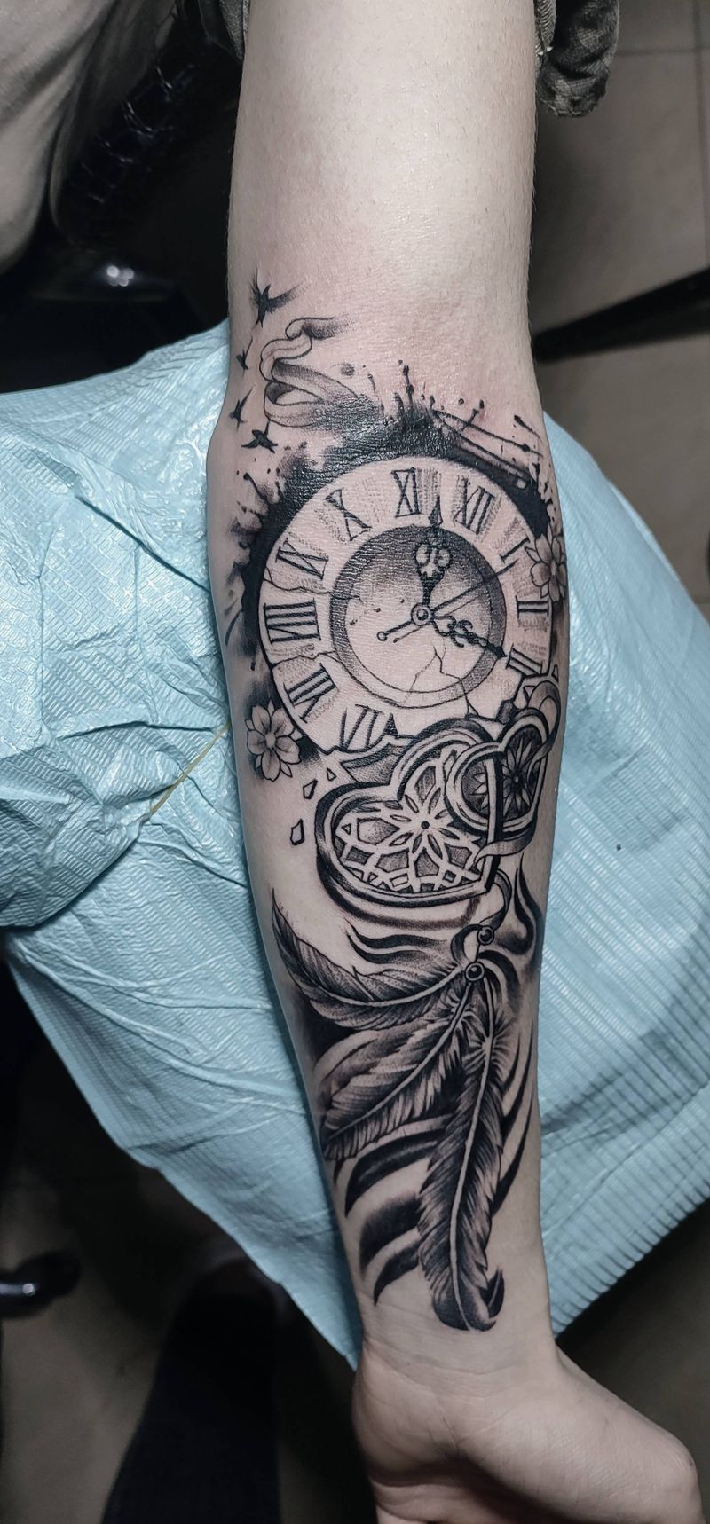 时钟纹身图片_手臂欧美写实纹身图案
