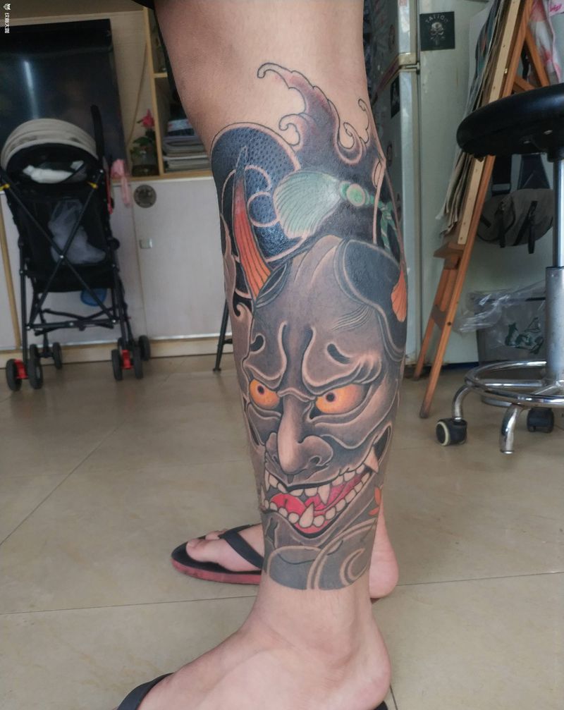 当前位置: 首页 >广西南宁市纹身店-晓龙刺青专业纹身纹身图案>般诺抱小腿纹身图片_腿部老传统纹身图案