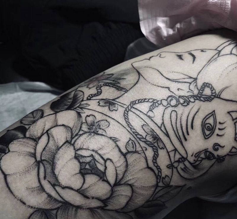 艺妓纹身图片_腿部纹身图案