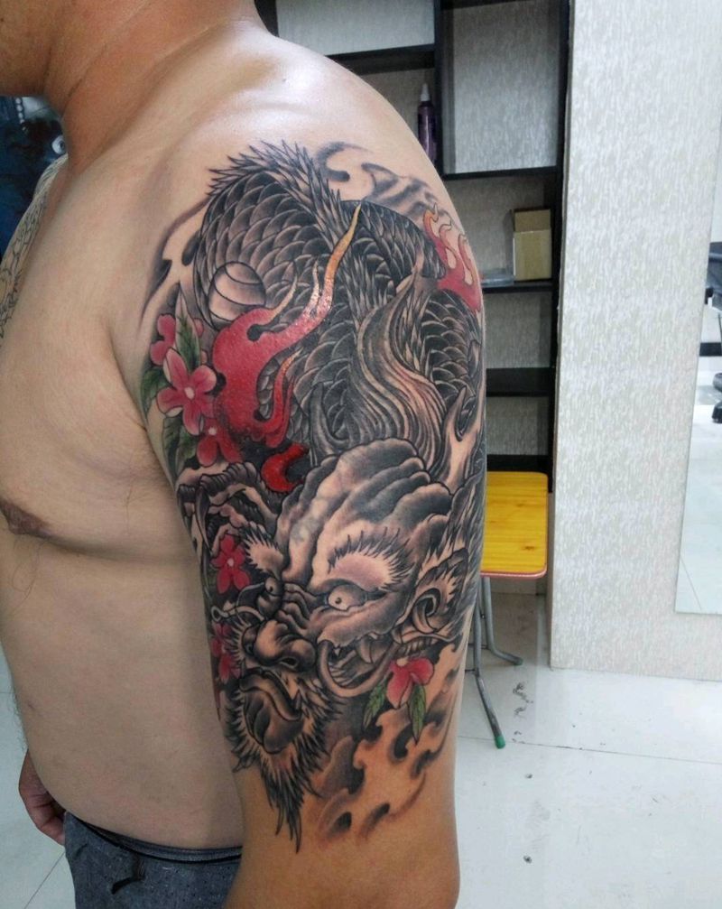 当前位置: 首页 >广西南宁市纹身店-晓龙刺青专业纹身纹身图案>大臂龙遮盖纹身图片