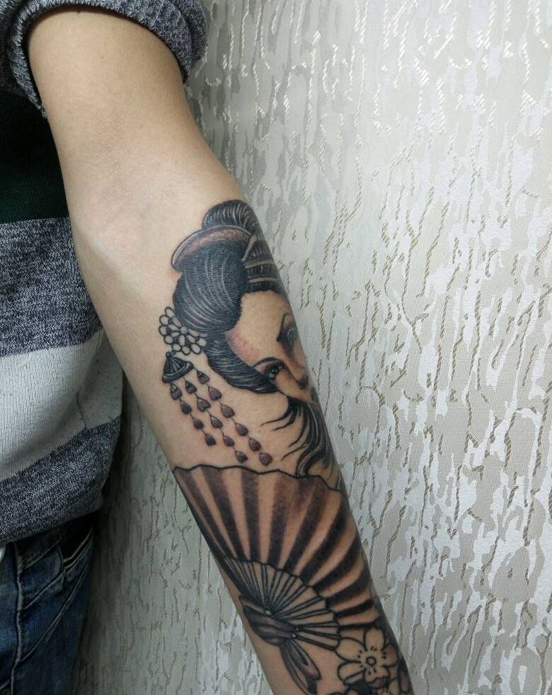 小臂 艺妓纹身图片_手臂手部传统肖像人物成品纹身图案