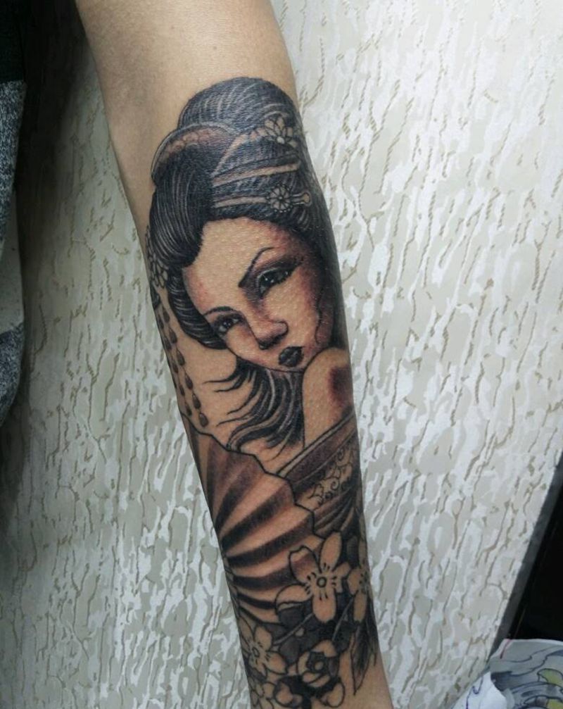 小臂 艺妓纹身图片_手臂手部传统肖像人物成品纹身图案