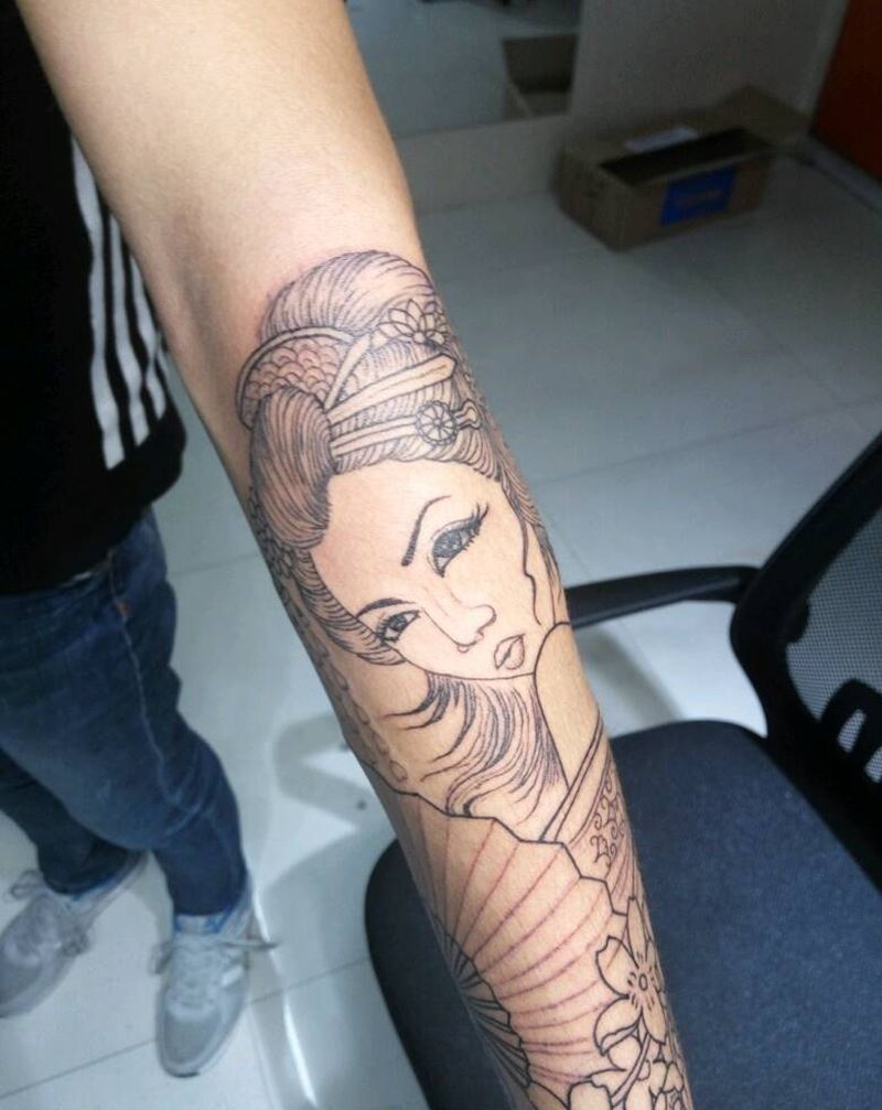 小臂 艺妓纹身图片_手臂手部传统肖像人物成品纹身图案