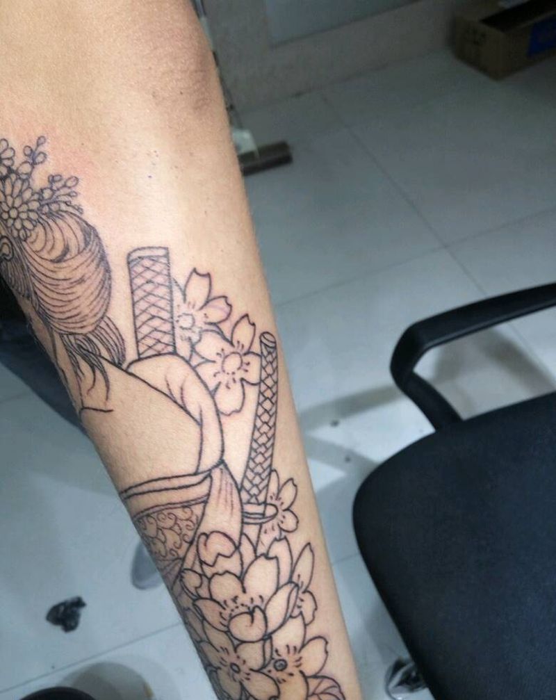 小臂 艺妓纹身图片_手臂手部传统肖像人物成品纹身图案