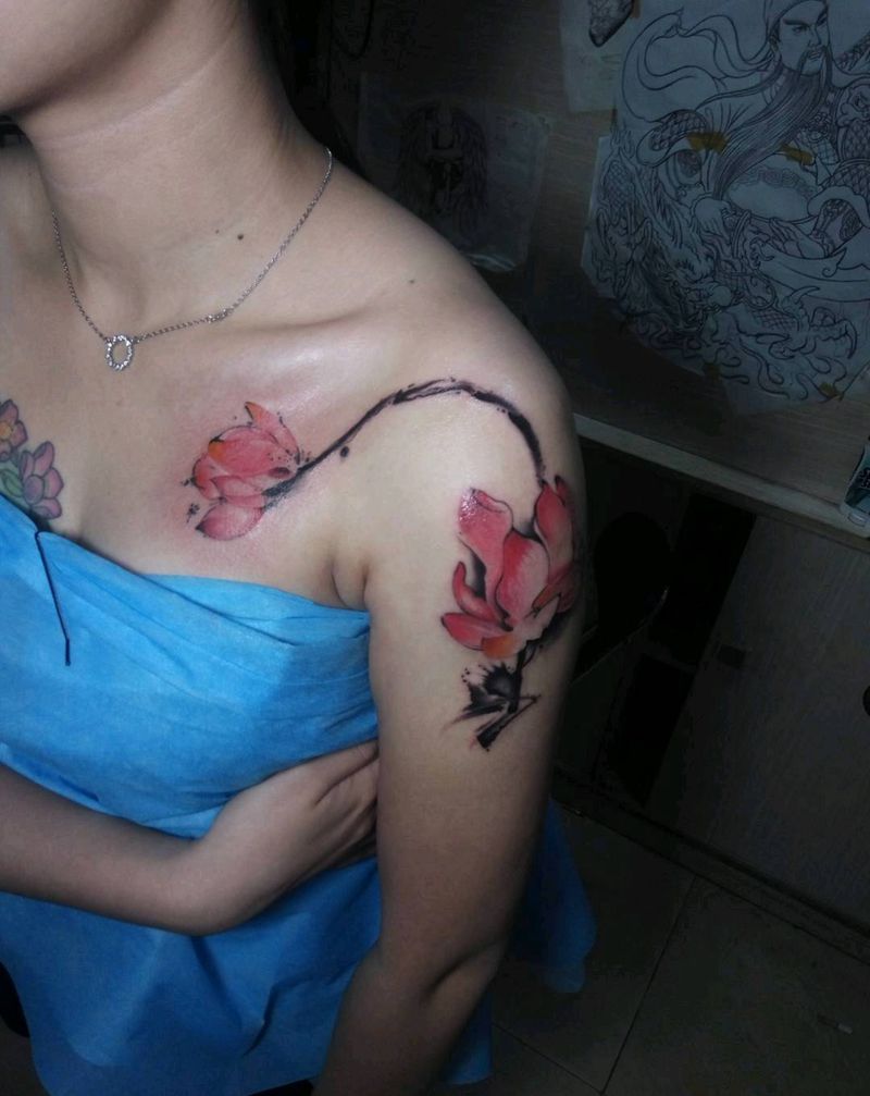当前位置: 首页 >广西南宁市纹身店-晓龙刺青专业纹身纹身图案>水墨荷花纹身图片_肩部纹身图案