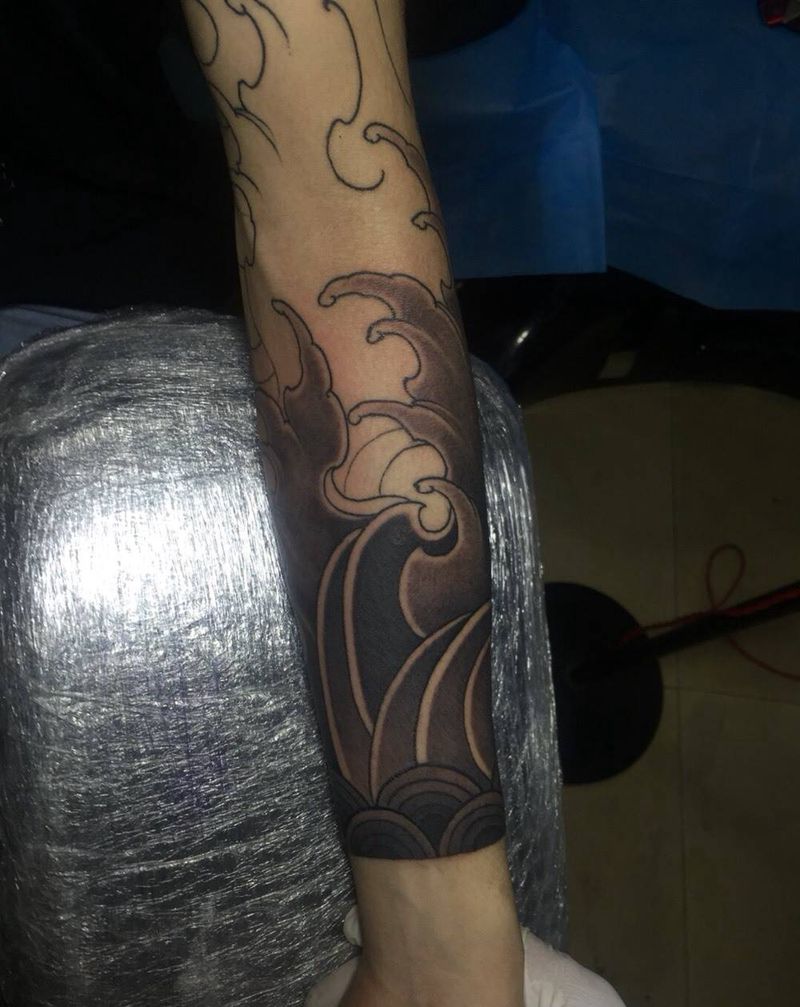 当前位置: 首页 >广西南宁市纹身店-晓龙刺青专业纹身纹身图案>传统水浪花臂纹身图片