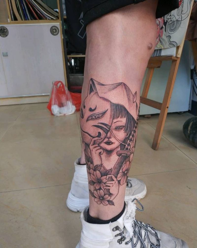当前位置: 首页 >广西南宁市纹身店-晓龙刺青专业纹身纹身图案>艺伎纹身图片_腿部点刺纹身图案