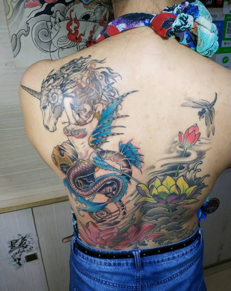 当前位置: 首页 >广西南宁市纹身店-晓龙刺青专业纹身纹身图案>传统荷花拼接美人鱼纹身图片_背部新传统Old School荷花纹身图案