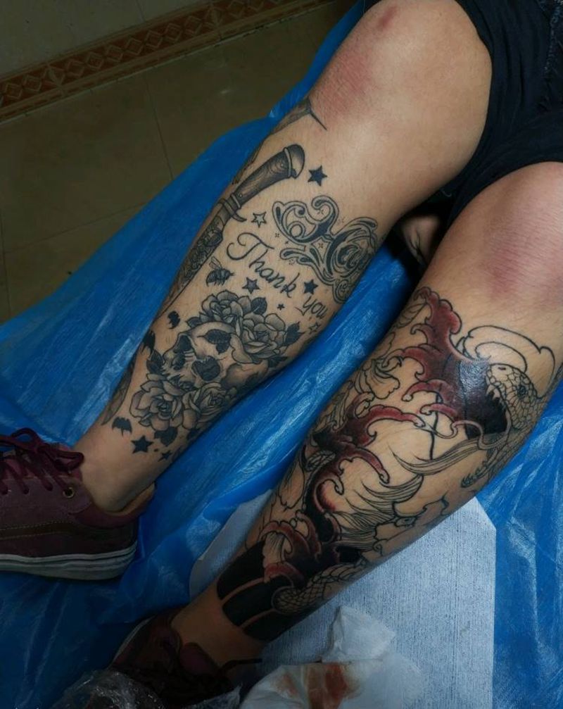当前位置: 首页 >广西南宁市纹身店-晓龙刺青专业纹身纹身图案>抱小腿纹身图片_腿部老传统新传统纹身图案