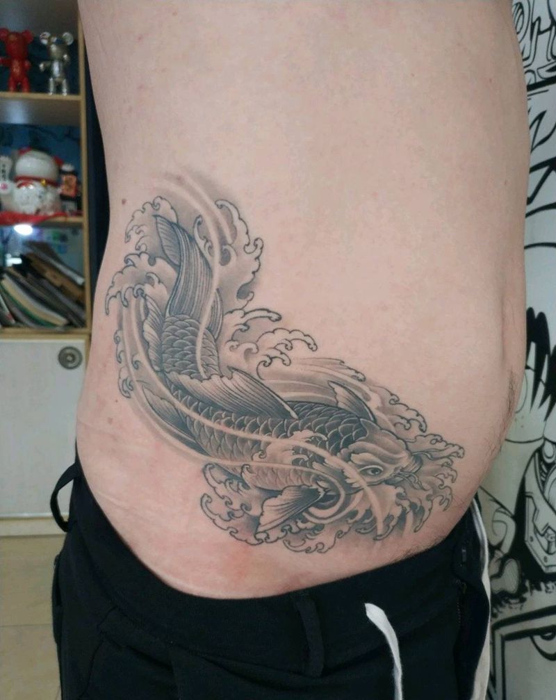 鲤鱼恢复后纹身图片_腰部新传统纹身图案