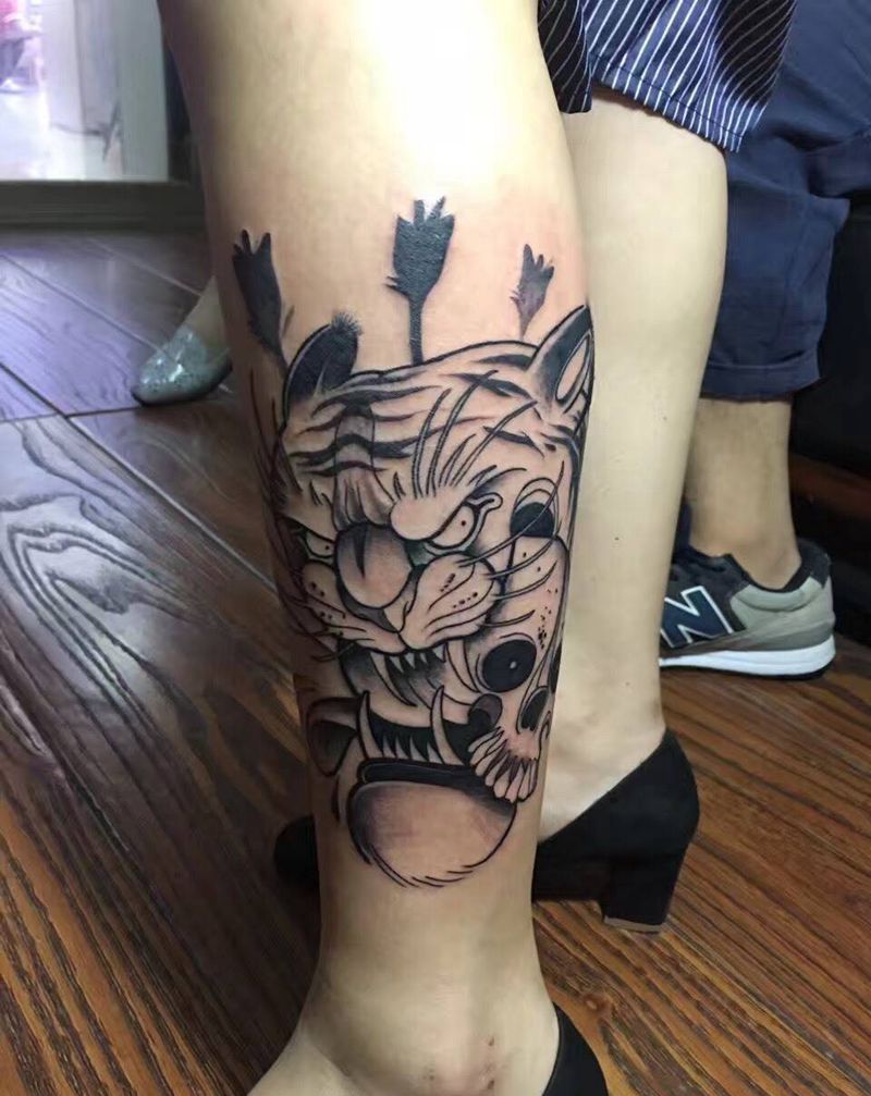 • T网红王老大花腿龙纹身图片_腿部新传统纹身图案