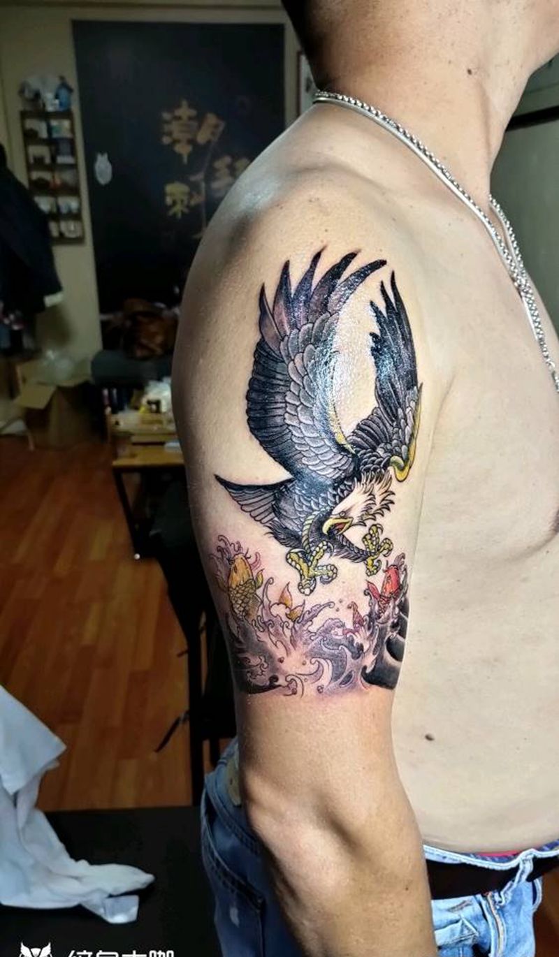 当前位置: 首页 >广西柳州市纹身店-潮拜刺青工作室纹身图案>鹰抓鱼纹身图片_手臂Old School新传统鹰纹身图案
