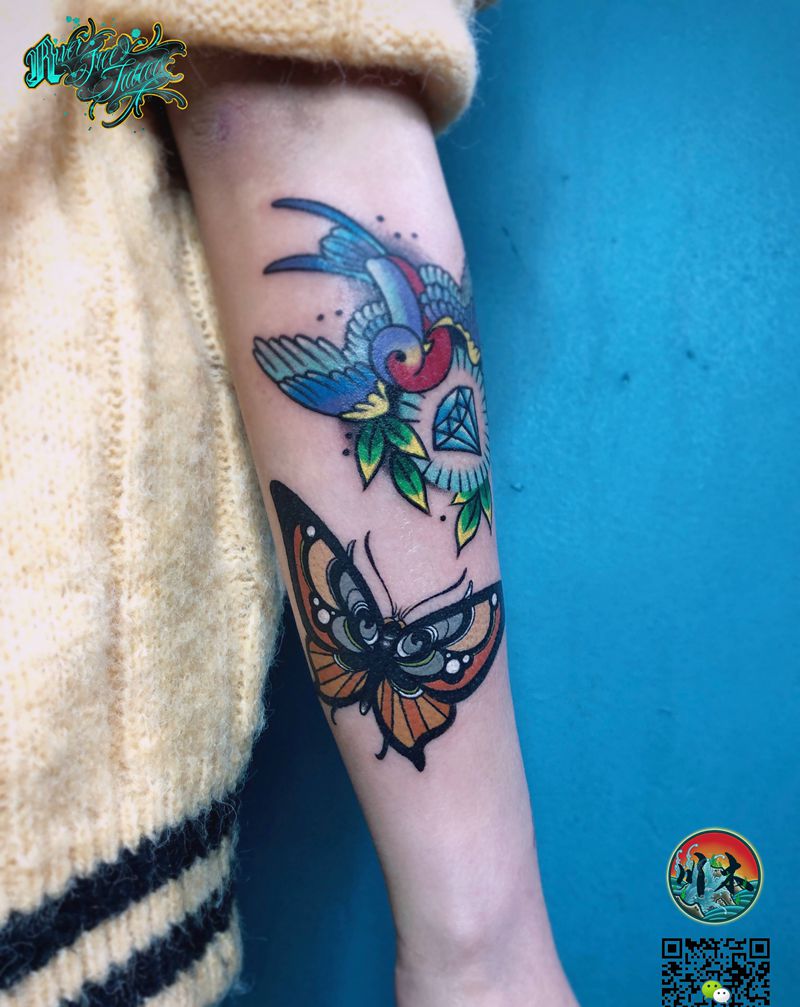 花臂x纹身图片_手臂Old School纹身图案