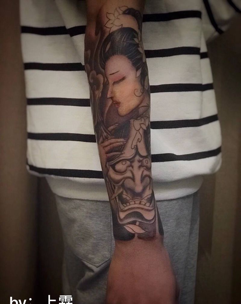 般诺艺妓纹身图片_手臂新传统纹身图案