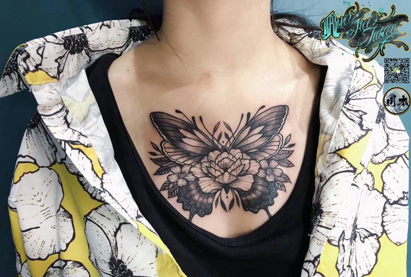 • 女性大花胸纹身_43张霸气漂亮的女性大花胸纹身图案作品