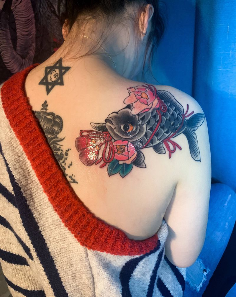 当前位置: 首页 >广西柳州市纹身店-东尚纹身纹身图案>金鱼纹身图片_肩部纹身图案