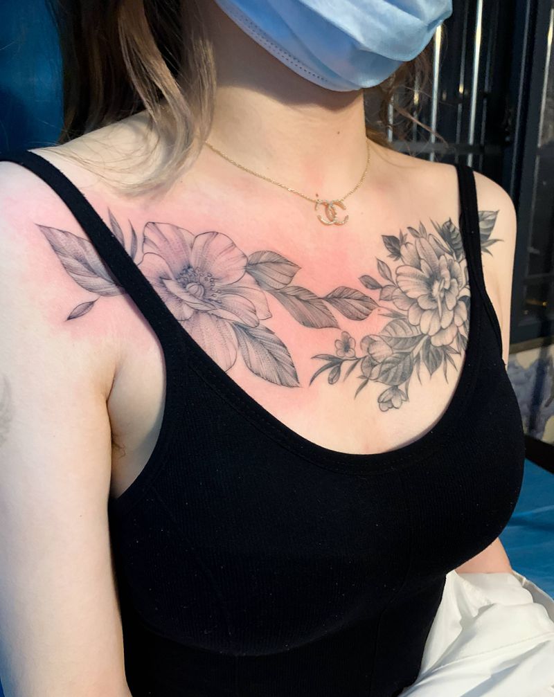 • 女性大花胸纹身_43张霸气漂亮的女性大花胸纹身图案作品