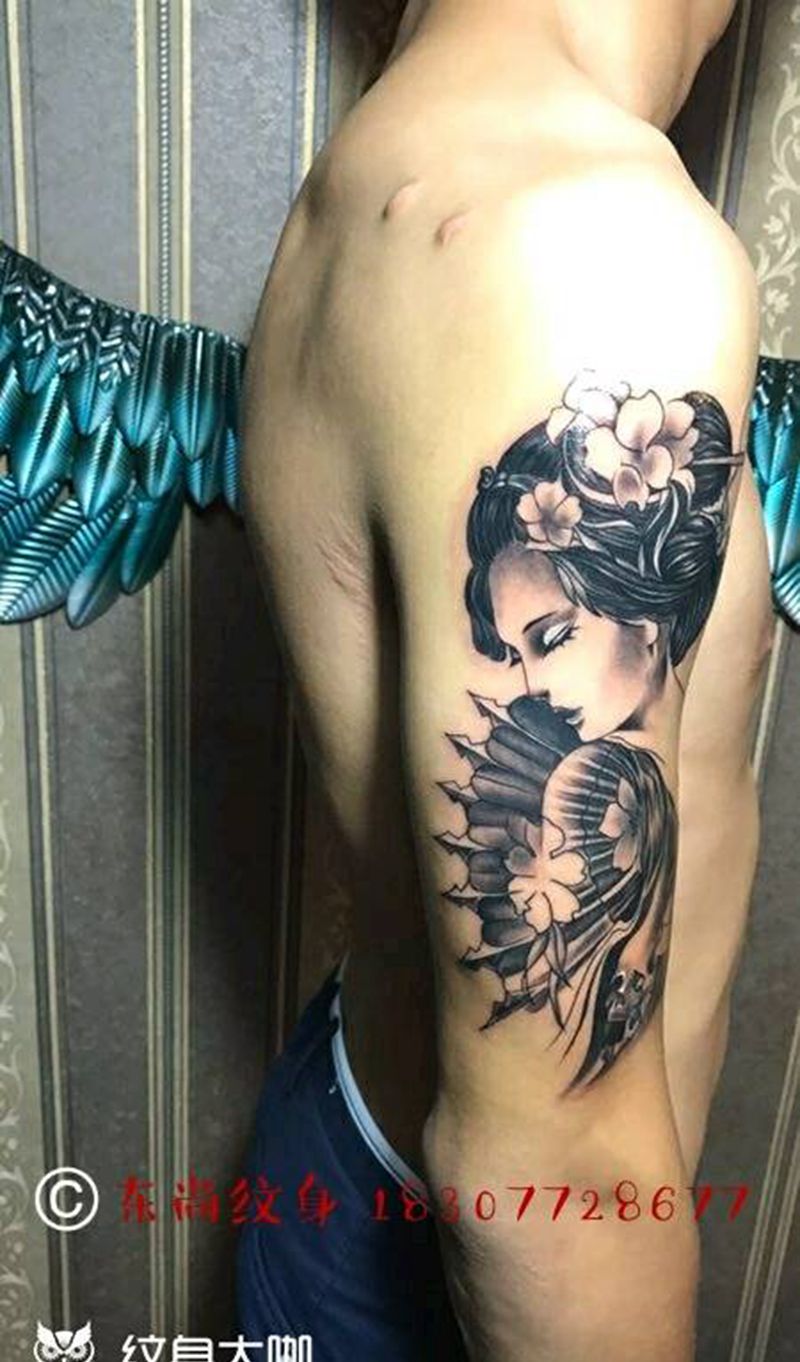 当前位置: 首页 >广西柳州市纹身店-东尚纹身纹身图案>艺妓纹身图片_手臂人物纹身图案