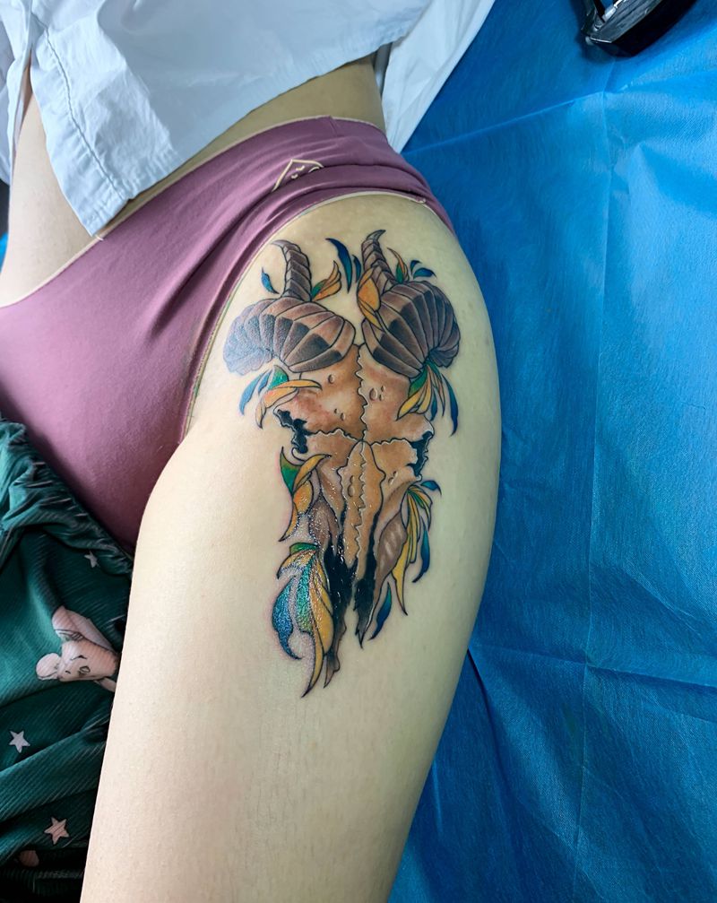 羊纹身图片_臀部新传统纹身图案