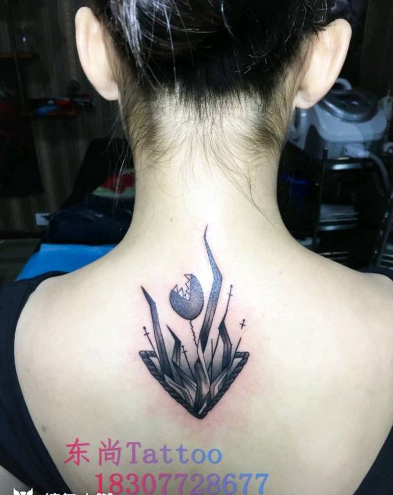 后背纹身图片_颈部背部老传统纹身图案