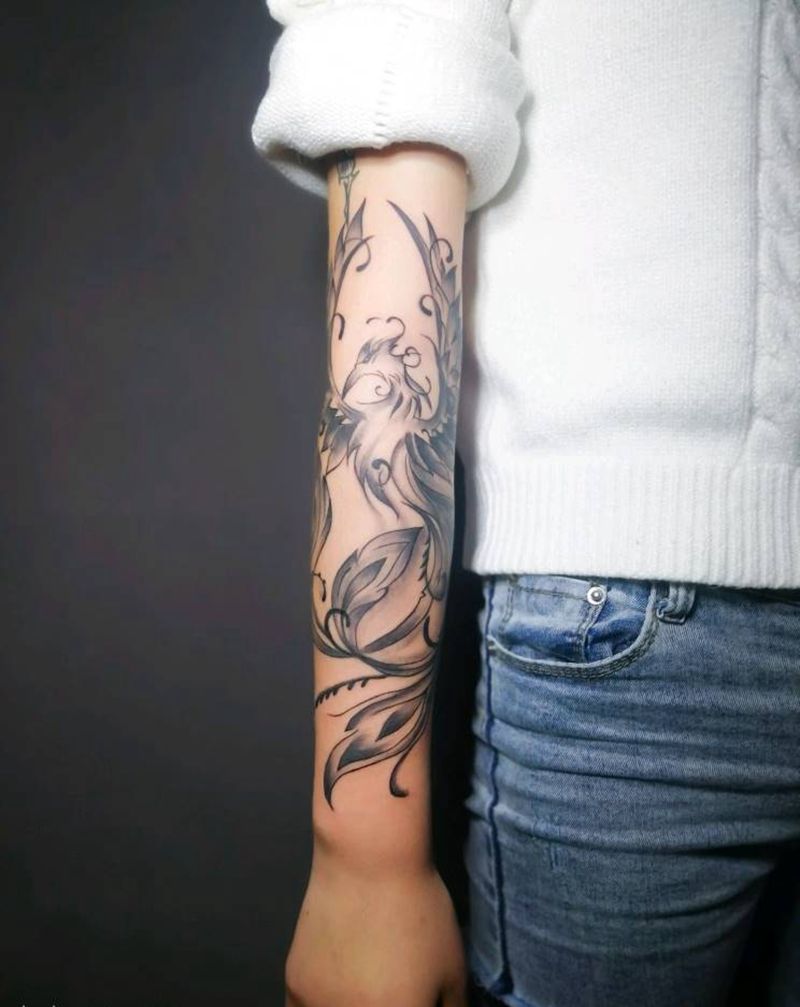 当前位置: 首页 >广西柳州市纹身店-东尚纹身纹身图案>抽象凤凰纹身图片_手臂纹身图案