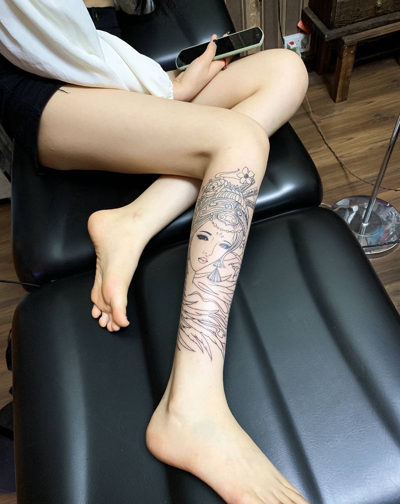 当前位置: 首页 >广西柳州市纹身店-东尚纹身纹身图案>艺妓纹身图片_腿部纹身图案