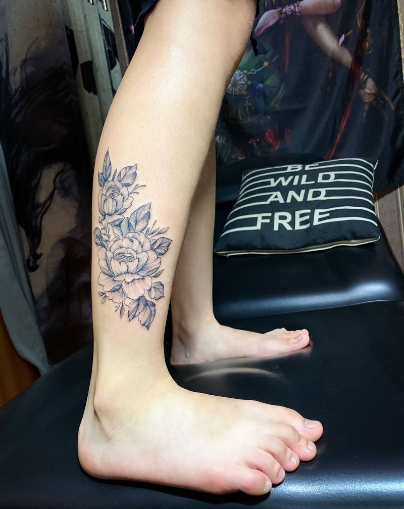 素花纹身图片_腿部纹身图案