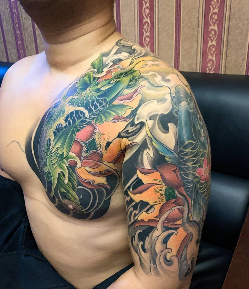 一组15张莲花纹身手