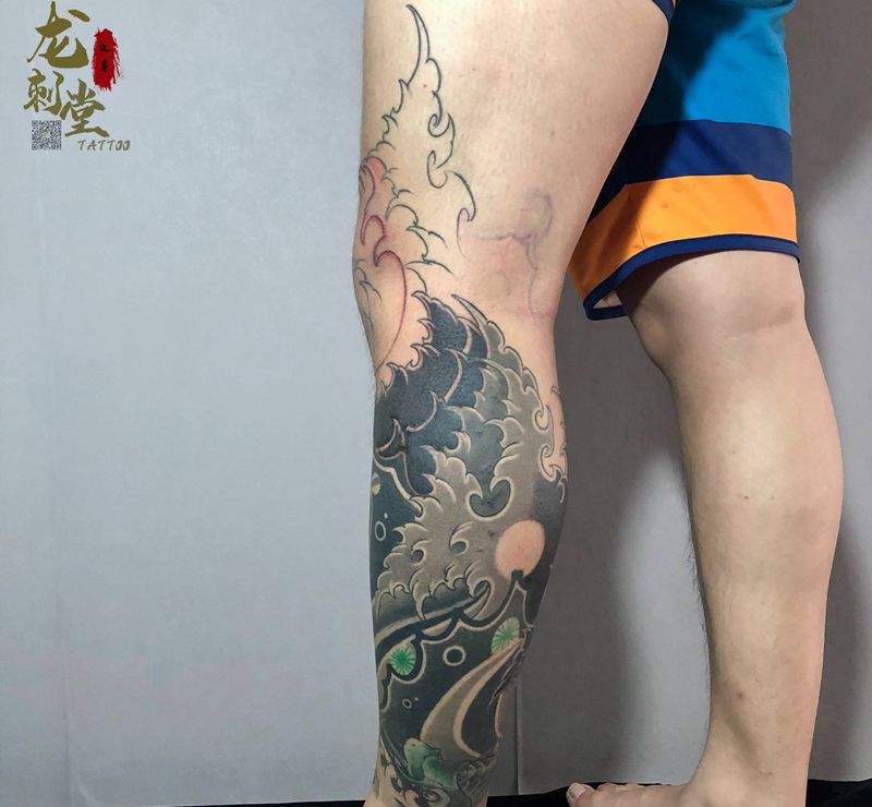 当前位置: 首页 >广西柳州市纹身店-龙刺堂纹身工作室(谷埠店)纹身图案>传统黑灰纹身纹身图片_腿部老传统包小腿传统版雾日式纹身图案