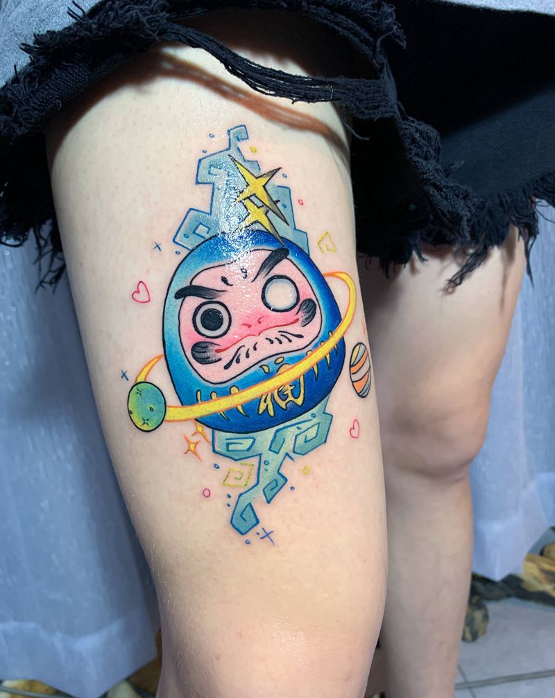 当前位置: 首页 >广西柳州市纹身店-东尚纹身纹身图案>达摩蛋纹身图片_腿部新传统水彩纹身图案
