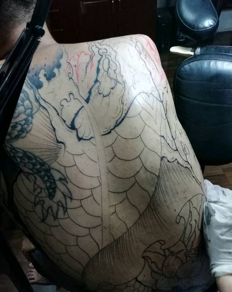 当前位置: 首页 >广西柳州市纹身店-龙刺堂纹身工作室(谷埠店)纹身图案>满背覆盖旧纹身纹身图片_背部传统动物龙刺堂成品纹身图案