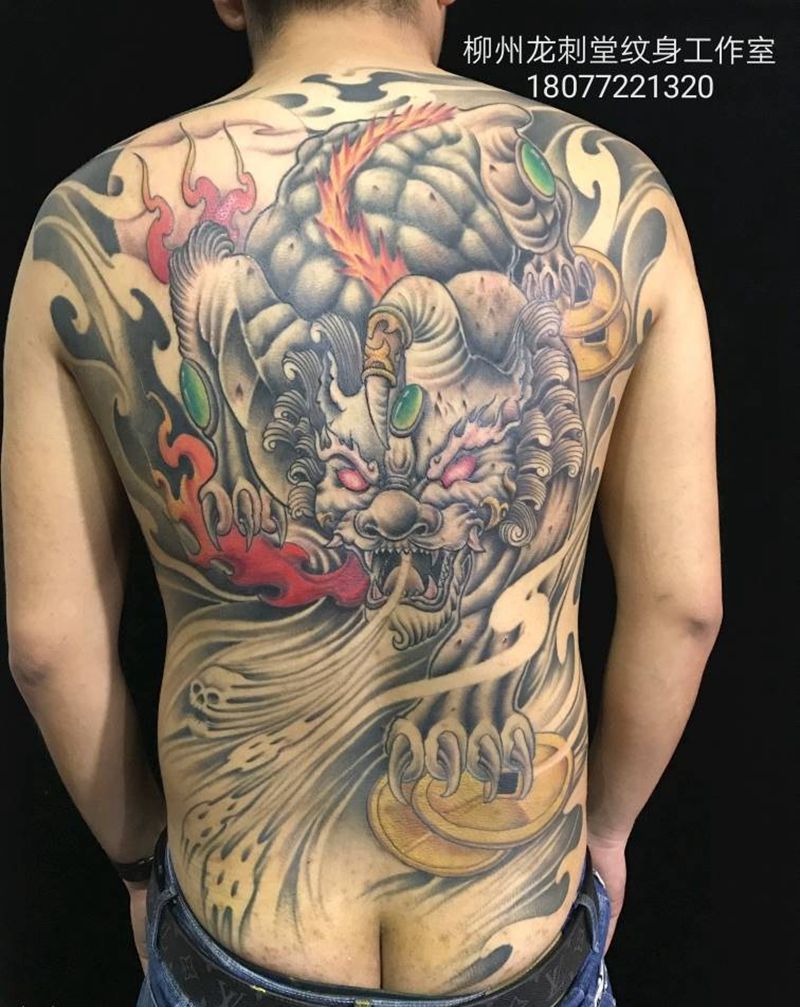 当前位置: 首页 >广西柳州市纹身店-龙刺堂纹身工作室(谷埠店)纹身图案>满背貔貅纹身图片_背部貔貅瑞兽纹身图案