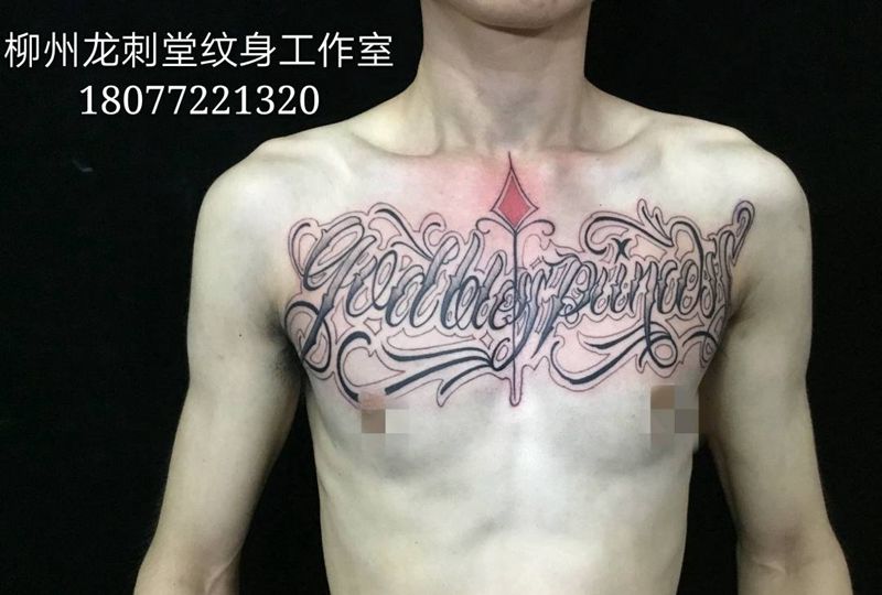 当前位置: 首页 >广西柳州市纹身店-龙刺堂纹身工作室(谷埠店)纹身图案>英文纹身图片_胸部花体字纹身图案