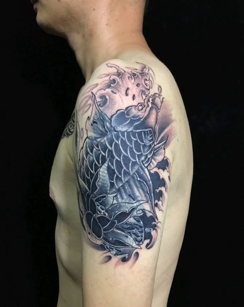覆盖旧纹身纹身图片_手臂老传统鱼纹身图案